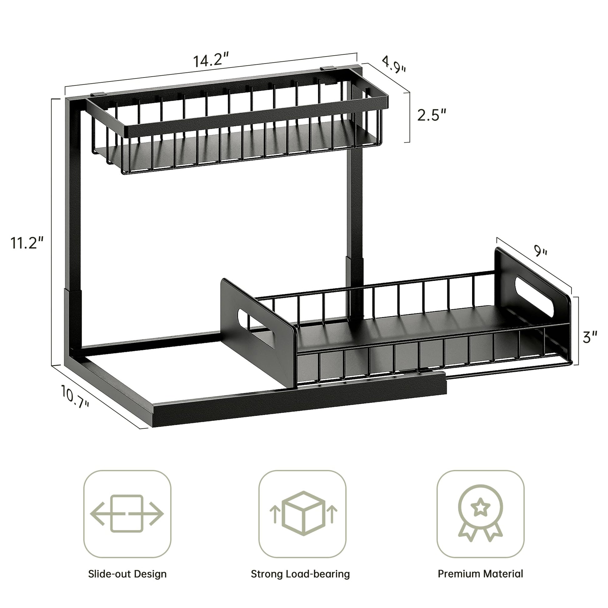 Under Sink Organizer and Storage, Slide Out Cabinet Organizer, Pull Out Sink Shelf for Kitchen Bathroom Laundry, 2 Pack Black
